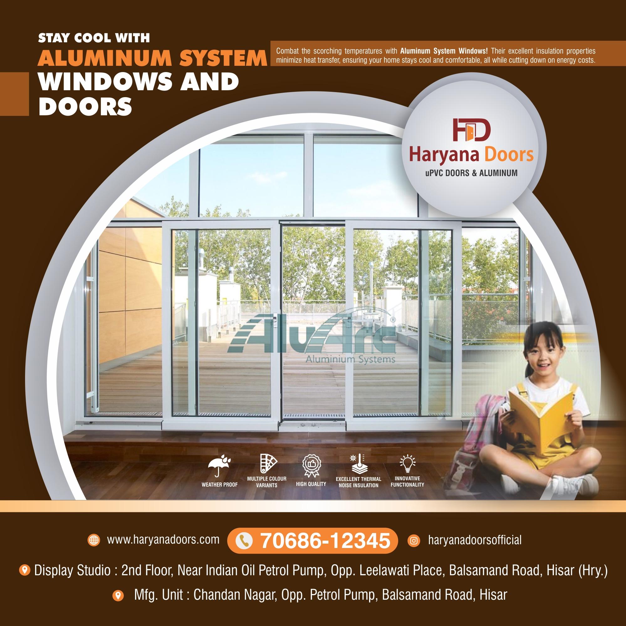Haryana Doors offers a wide range of powder-coated finishes for our aluminum systems. This allows you to customize the look of your windows and doors to perfectly match your home's exterior and interior design. Whether you prefer a classic black or a sleek white finish, we have a variety of options to suit your taste.